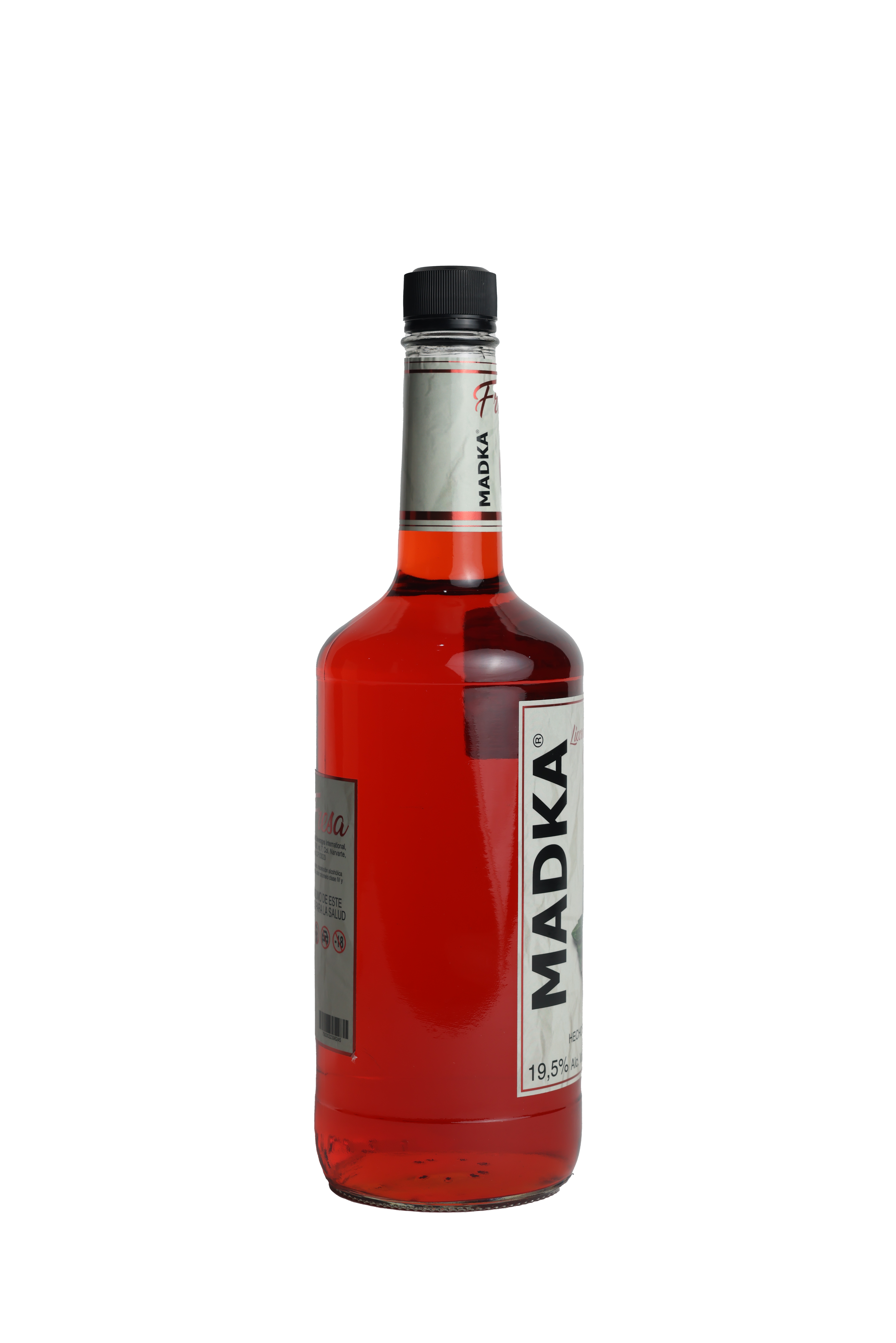 Licor Madka de Fresa de 1 litro, ideal para preparar cocteles o tomar solo, tiene un delicioso sabor y aroma a fresa intenso. 19.5% Alc. Vol.